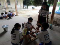 後半は、外で火起こし体験をしました。自分の手で火を起こす体験を通して、火を起こす大変さを体験することできました。