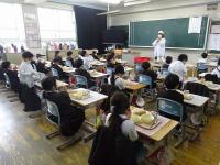 校内放送に従って、子どもたちが教室で静かに避難準備を